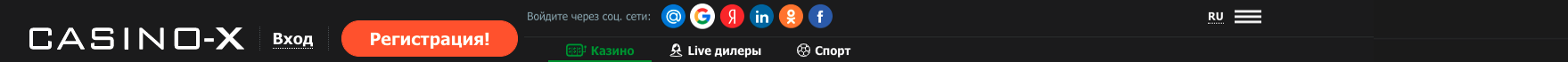 Официальный ресурс разработан в темных, не выделяющихся тонах. Игроки сразу могут наблюдать главные разделы, размещенные на верхней позиции сайта. Для времяпровождения в Казино Казино Х предлагаются услуги беттинга с разного рода спортивными мероприятиями: